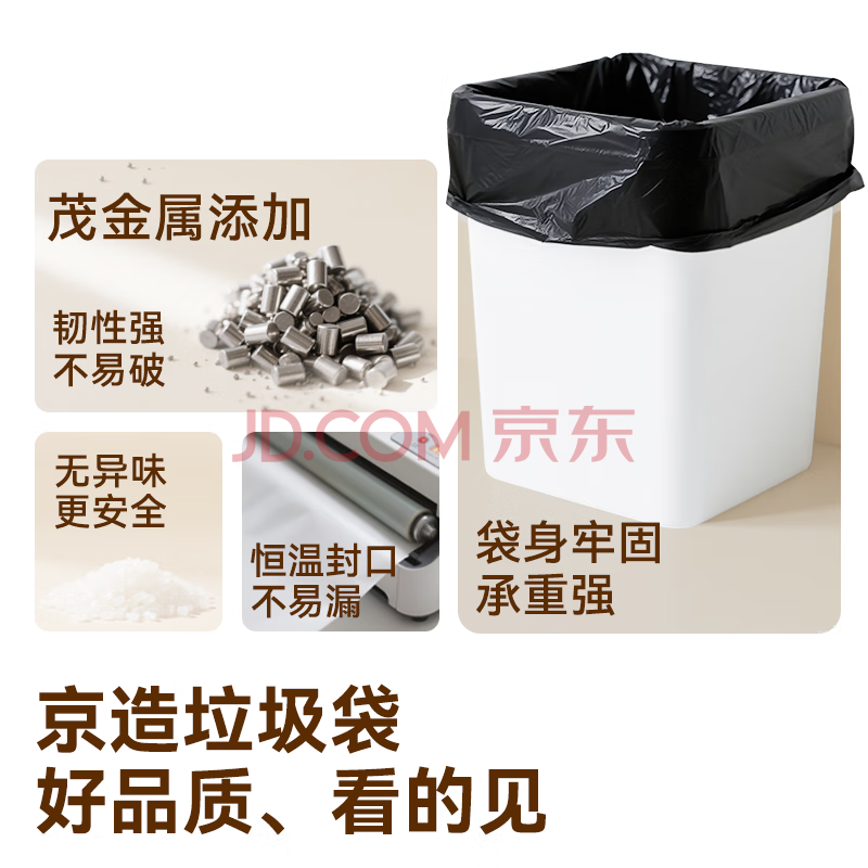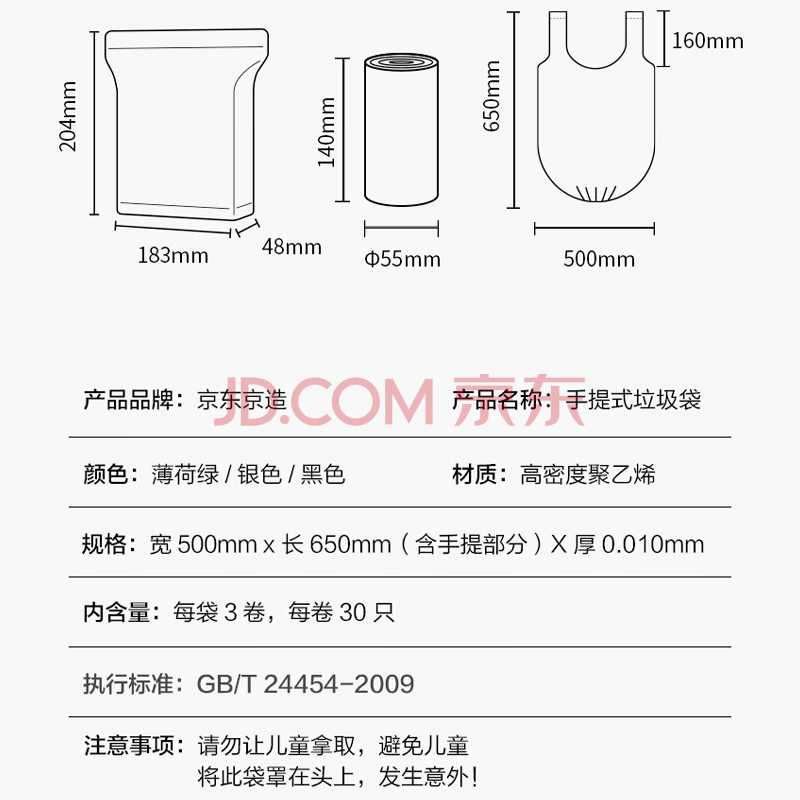 商品相册:京东京造 背心式垃圾袋50*65cm*90只 10μ1丝 手提厨房家用加厚袋大号第