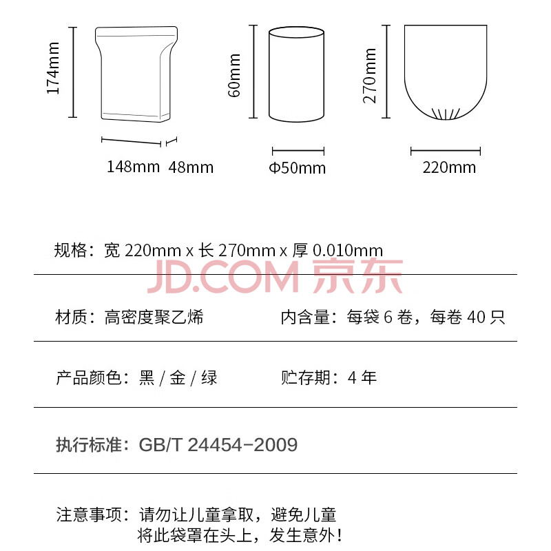 商品相册:京东京造 平口垃圾袋28*22cm*240只 10μ1丝 三色分类厨房家用加厚袋迷你第