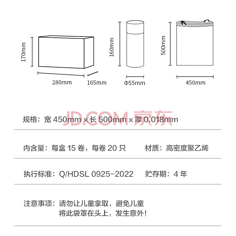 商品相册:京东京造 抽绳式垃圾袋45*50cm*300只 超厚18μ1.8丝手提厨房家用加厚中号第