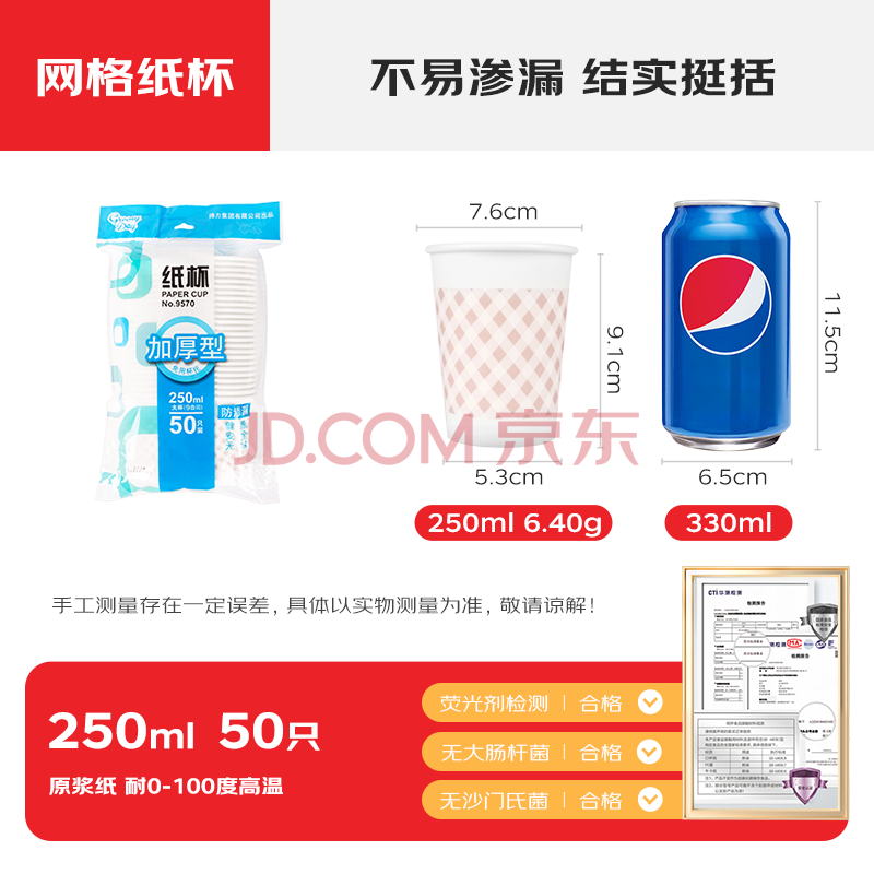 商品相册:得力(deli)(deli)250ml(9盎司)加厚一次性杯子 水杯/纸杯 50只装 办公用品第