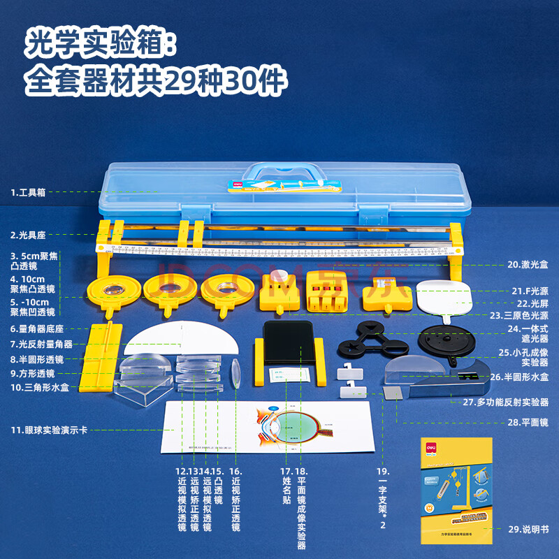 商品相册:得力(deli)升级初中物理实验试验箱 光学实验教材配套同步配件齐全科学实验盒学生生日开学礼物30件套第