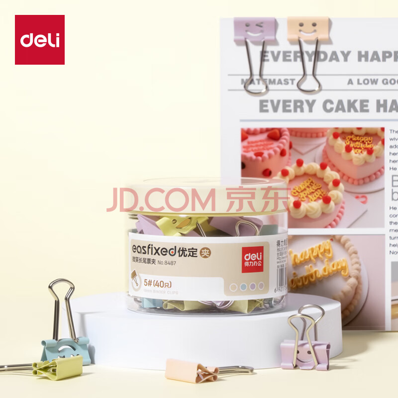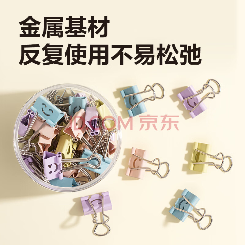 商品相册:得力(deli)40只19mm微笑系列金属长尾票夹票据夹燕尾夹 小号文件夹子 办公用品 40只/筒 8487第