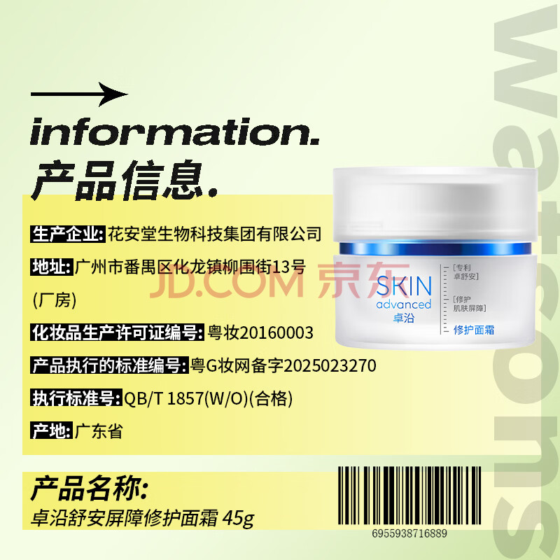 商品相册:屈臣氏卓沿白金舒润保湿面霜45g敏感肌专研 补水保湿第