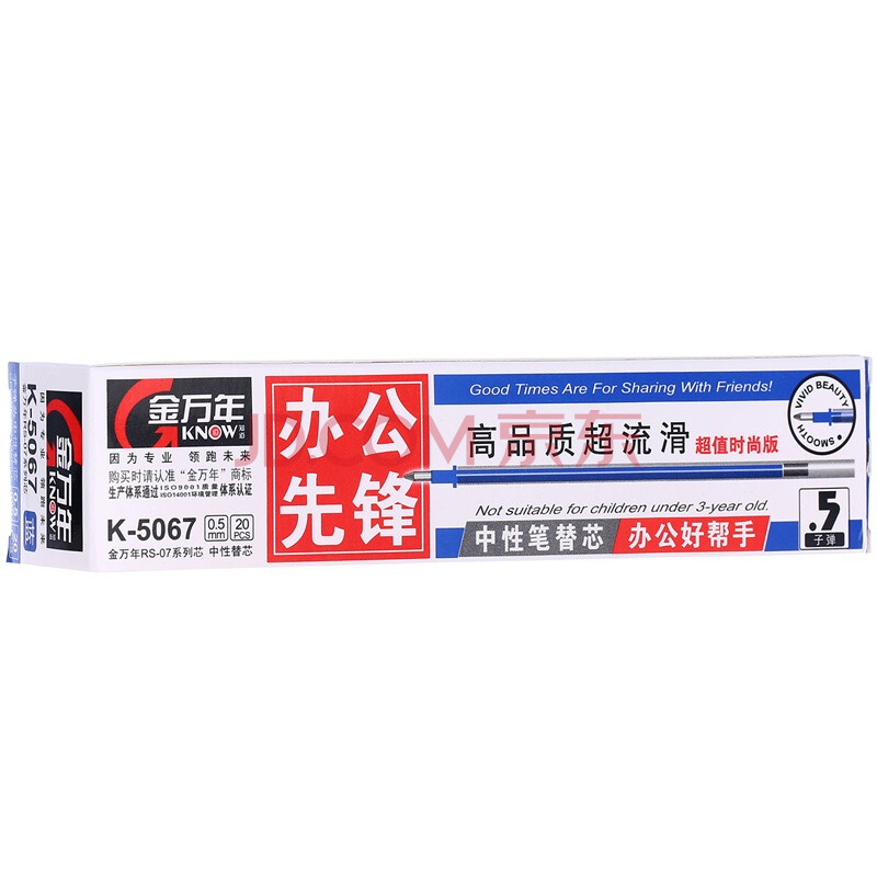 商品相册:金万年蓝色0.5子弹头中性笔芯 替芯 签字笔水笔 学生文具 (20支装)K-5067-002第