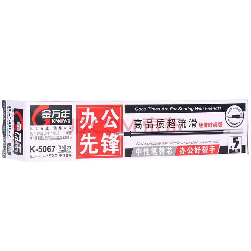 商品相册:金万年20支黑色0.5子弹头笔芯替芯签字笔水笔芯学生考试办公K-5067-001第