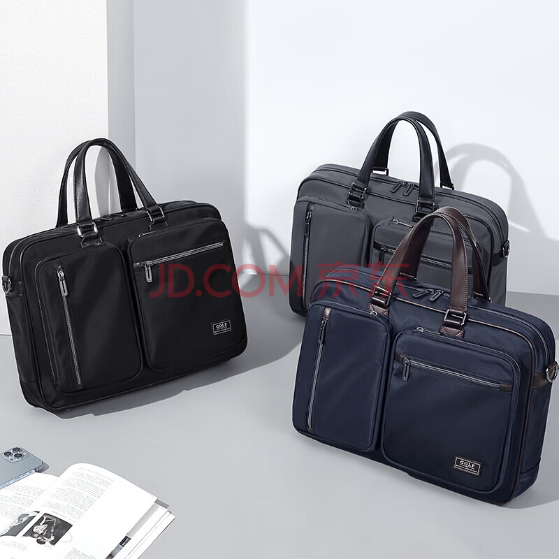 商品相册:高尔夫GOLF商务公文包男士大容量手提包男15.6英寸电脑包多隔层防泼水休闲单肩斜挎包5I698441J黑色第