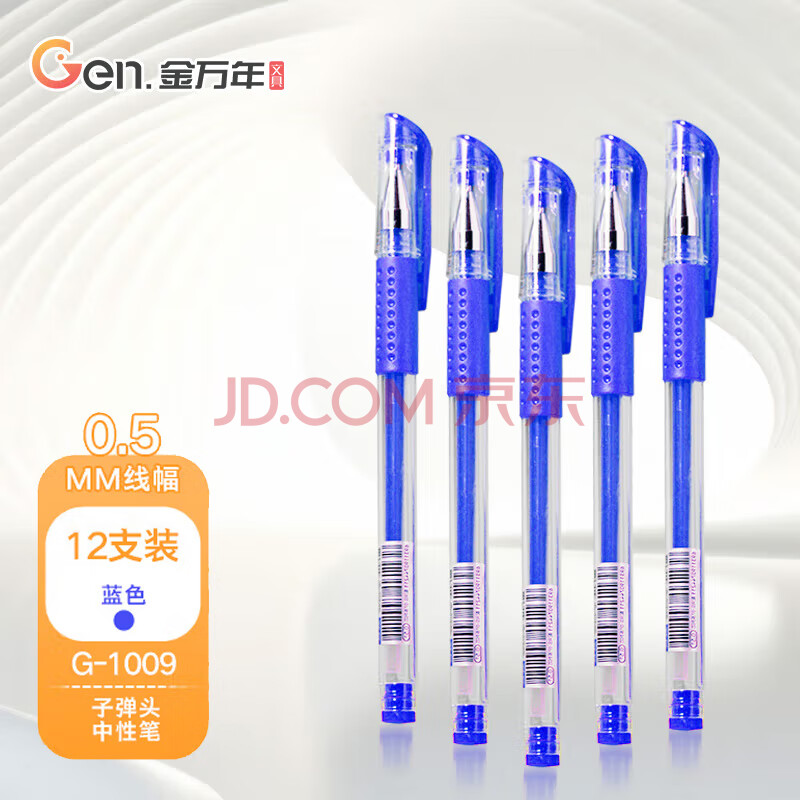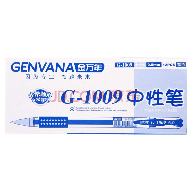 商品相册:金万年 蓝色0.5mm中性笔书写考试 学生用签字笔 签约笔 教师专用批改 12支装 G-1009-002第