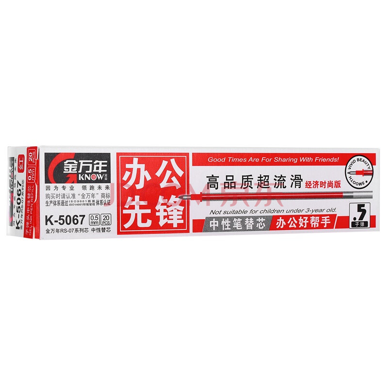商品相册:金万年红色0.5子弹头笔芯替芯中性笔水笔学生办公文具(20支装)K-5067-003第