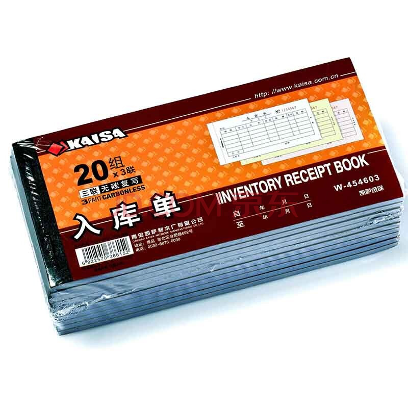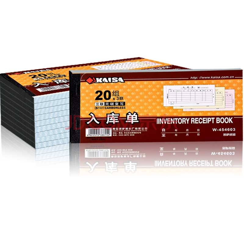 商品相册:凯萨(KAISA)54K/三联入库单 3联20组无碳复写单据横板加厚入库清单(173*85mm) 10本装 W-454603第