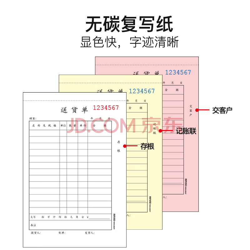 商品相册:凯萨(KAISA)32K/三联送货单 3联20组无碳复写单据竖版送货清单货物单票据 (188*125mm) 10本装 W-232604第