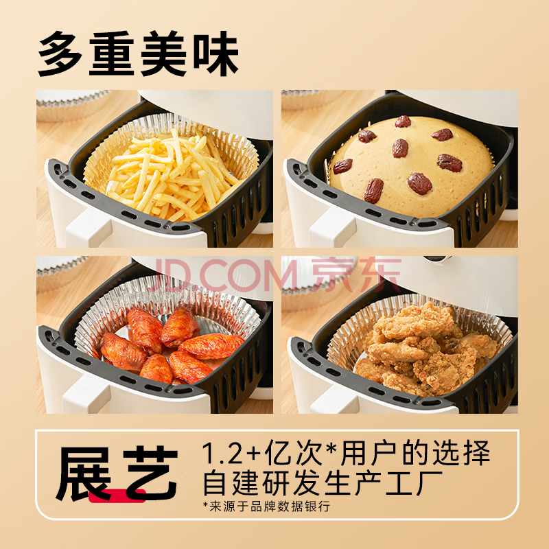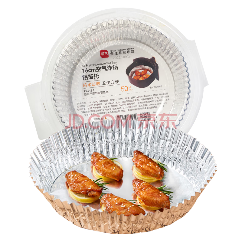 商品相册:展艺空气炸锅锡纸盘50只装16cm圆形加厚加深铝箔托烘焙烤箱食品级露营第
