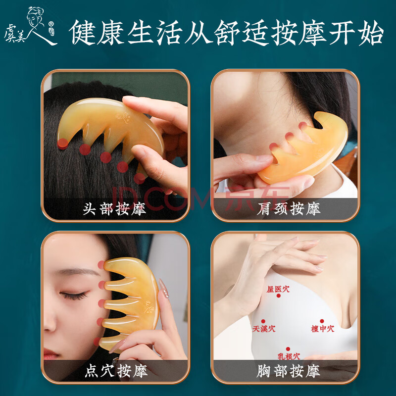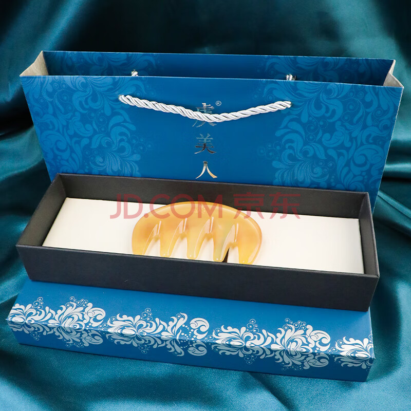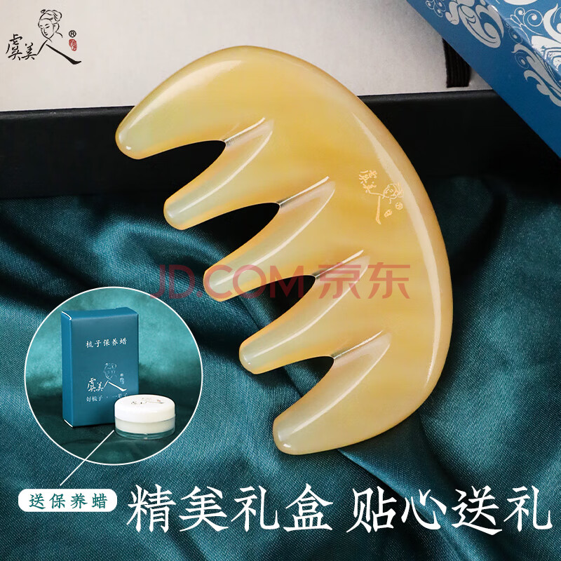 商品相册:虞美人梳子按摩梳牛角梳子经络梳五齿梳送女友生日礼物礼盒第