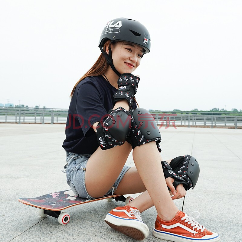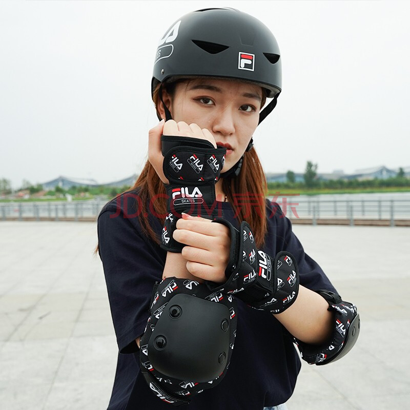 商品相册:斐乐FILA专业滑板自行车护具成人儿童刷街专业滑板护具 黑色 S码第
