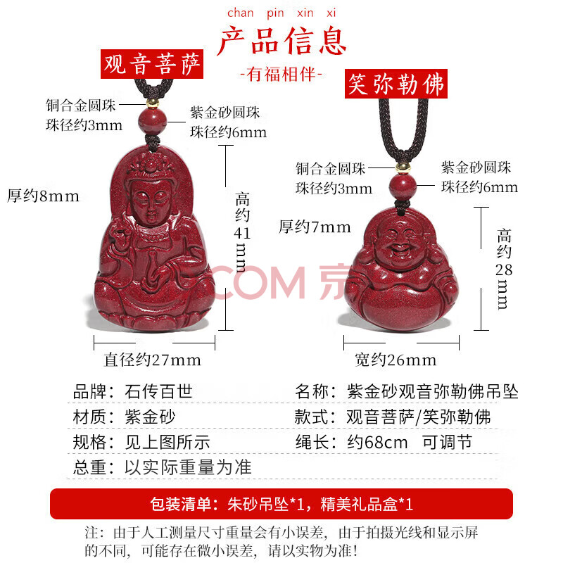 商品相册:石传百世朱砂吊坠紫金砂观音菩萨弥勒佛项链男女士护身符挂件本命年礼物第