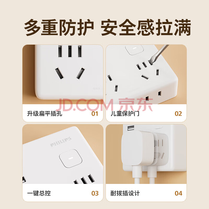 商品相册:飞利浦(PHILIPS)魔方USB插座转换器/86型转换插座插头/Typec插座扩展/一转多插座/多功能插座第