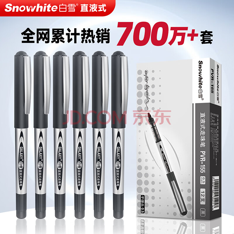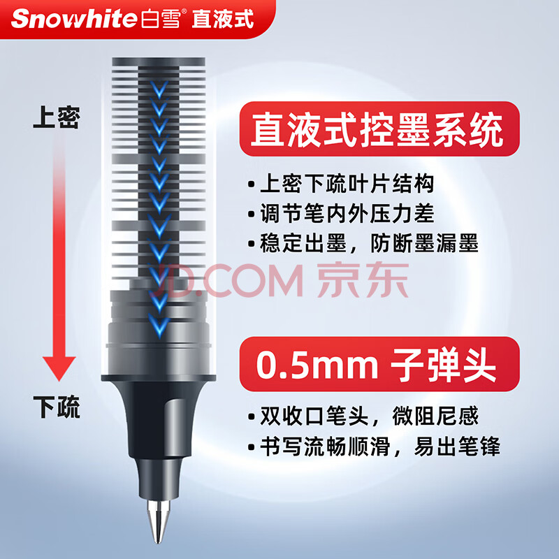 商品相册:白雪(snowhite)直液式走珠笔中性笔签字笔学生用考试专用笔巨能写子弹头0.5mm 蓝色 12支/盒PVR-155第