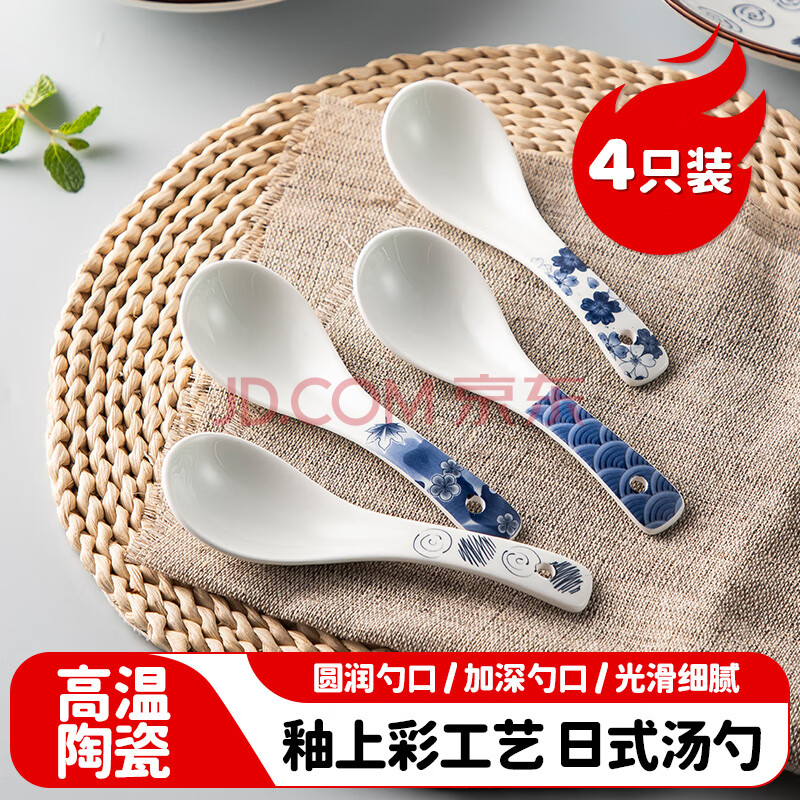 商品相册:美厨(maxcook)饭勺汤勺 陶瓷勺餐勺汤匙勺子日式小勺调羹5.5英寸4个装 MCCU4520第