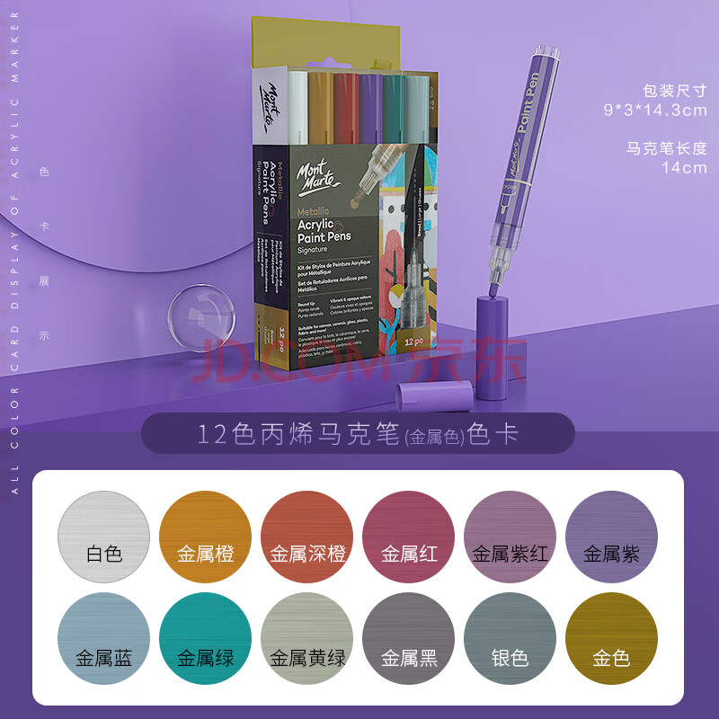 商品相册:蒙玛特(Mont Marte)丙烯马克笔12色 丙烯画笔美术画画笔儿童diy颜料绘画笔套装防水金属色涂鸦笔V MPN0168CN速写素描第