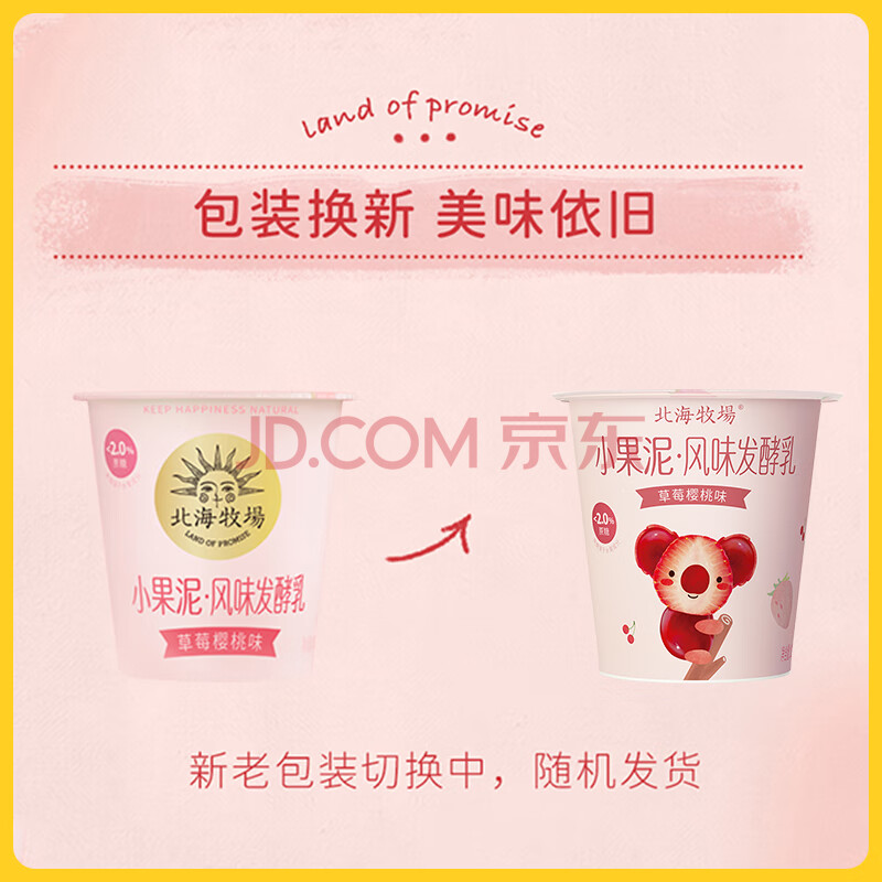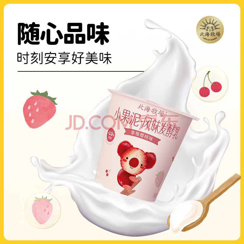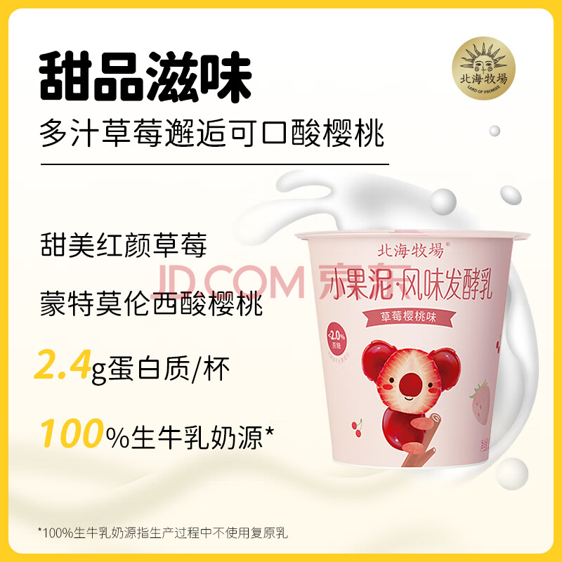 商品相册:北海牧场 小果泥草莓樱桃味100g*3杯 高钙低温儿童酸奶酸牛奶 风味发酵乳第