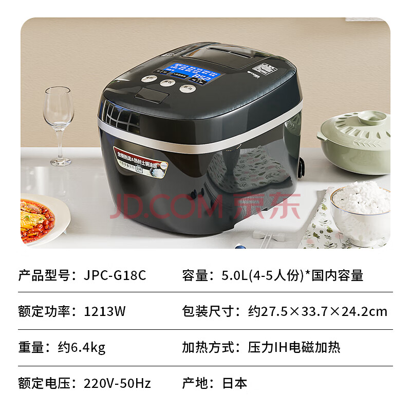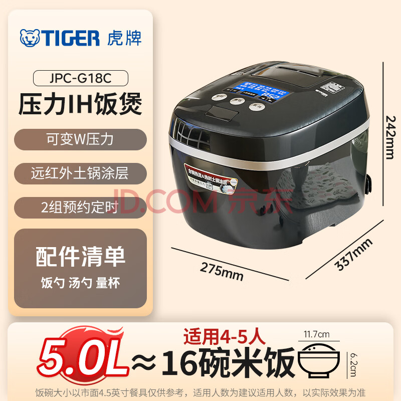 商品相册:虎牌(TIGER) 压力IH智能多功能压力电饭煲 日本原装进口高端系列4-5人份 黑色 5L JPC-G18C-KM第