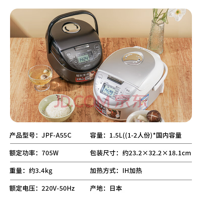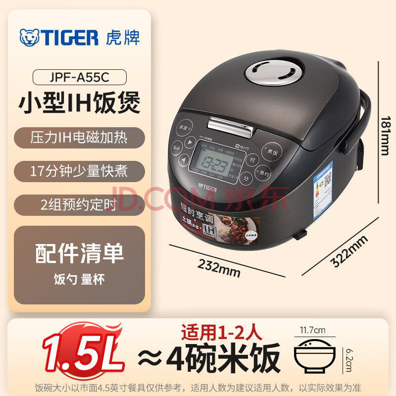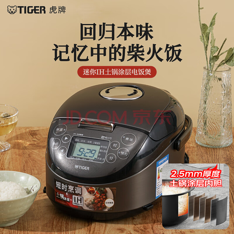 商品相册:虎牌(TIGER)电饭煲Pro 迷你小型IH土锅涂层 电饭煲家用1-2人 1.5L 绸缎黑 JPF-A55C-K第