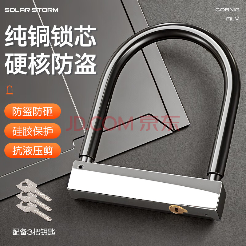 商品相册:SolarStorm 自行车锁摩托车锁电动车锁电瓶U形锁防盗锁电瓶车u型锁月牙锁芯第