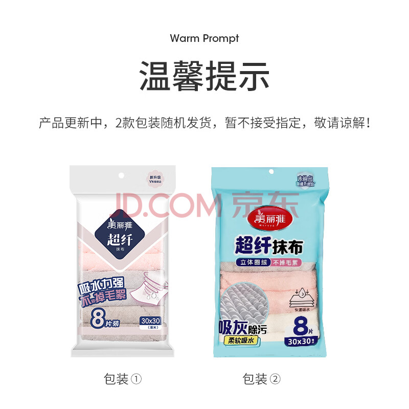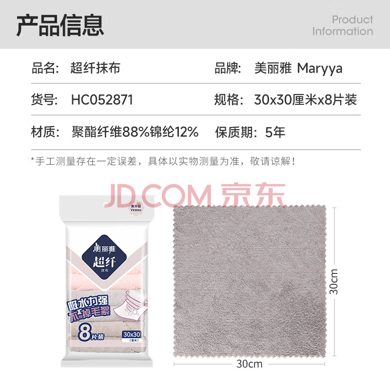 商品相册:美丽雅纤维抹布30*30cm8片厨房洗碗巾吸水无痕不易掉毛擦桌清洁保洁专用第