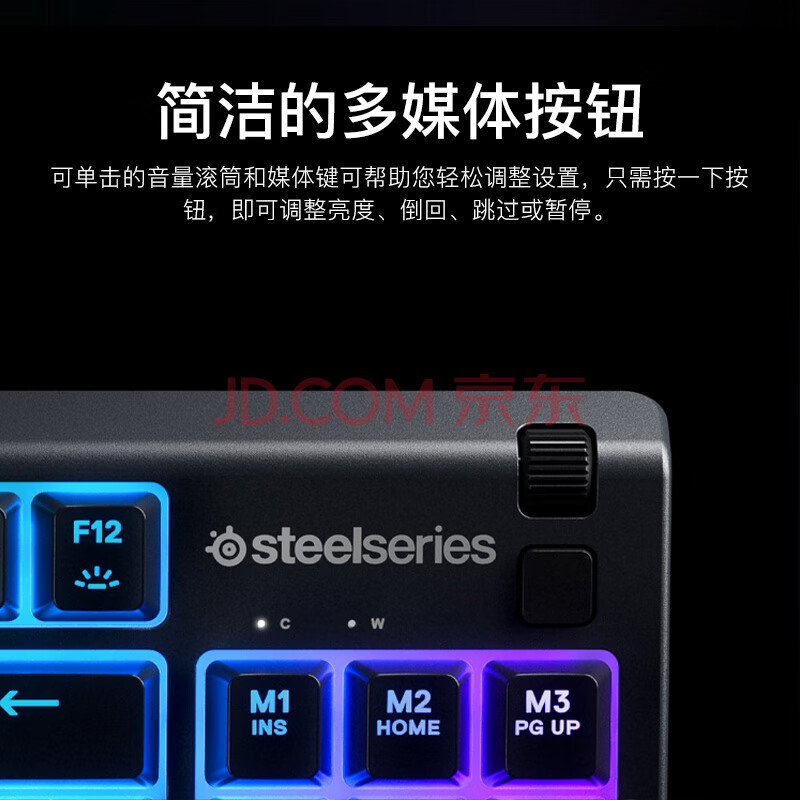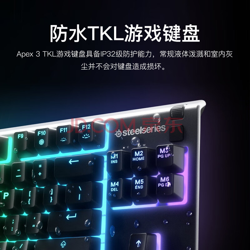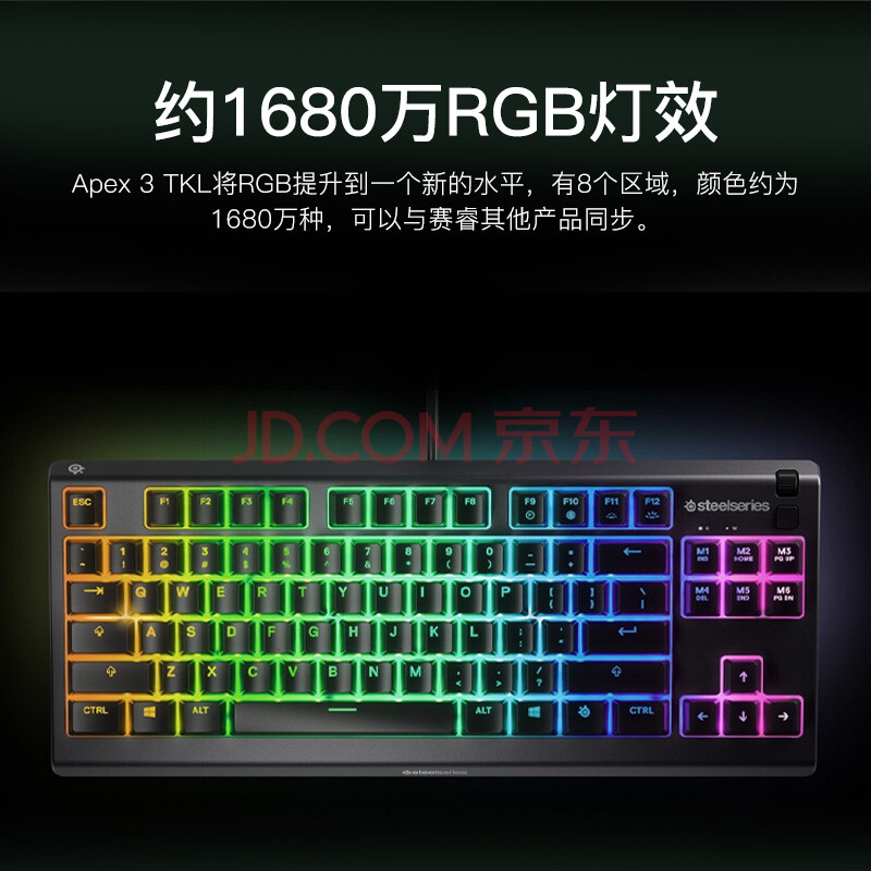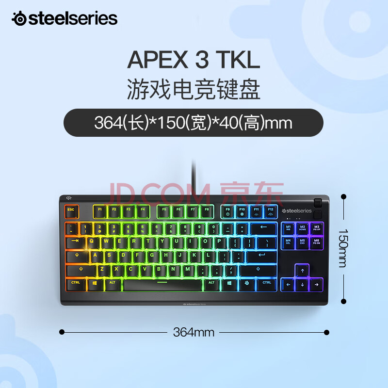 商品相册:赛睿(SteelSeries) (SteelSeries) Apex 3 TKL游戏键盘 紧凑型有线键盘 8区域RGB背光 IP32 薄膜轴 84键第