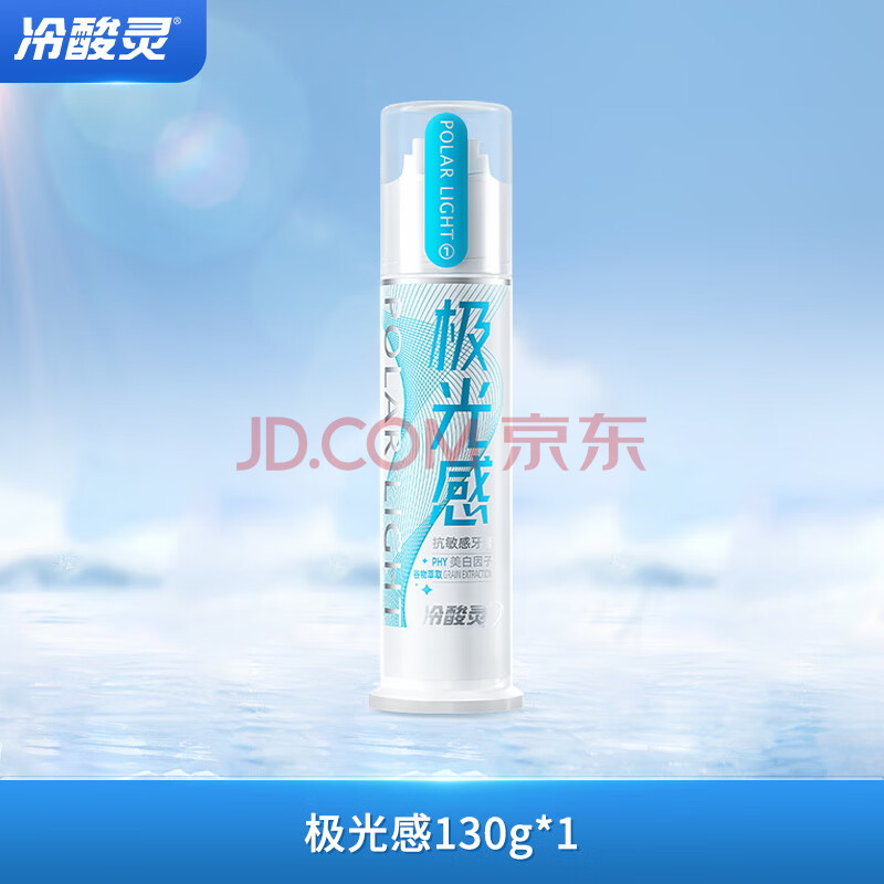 商品相册:冷酸灵极光感泵式牙膏 抗敏感 光感美白 减少外源性着色 晶蓝膏体 130g第