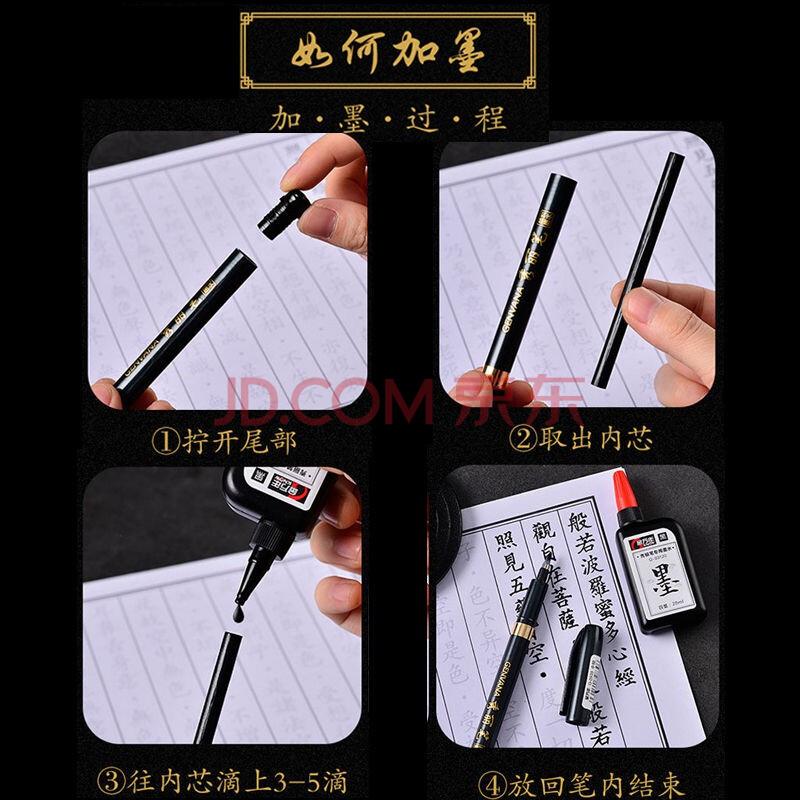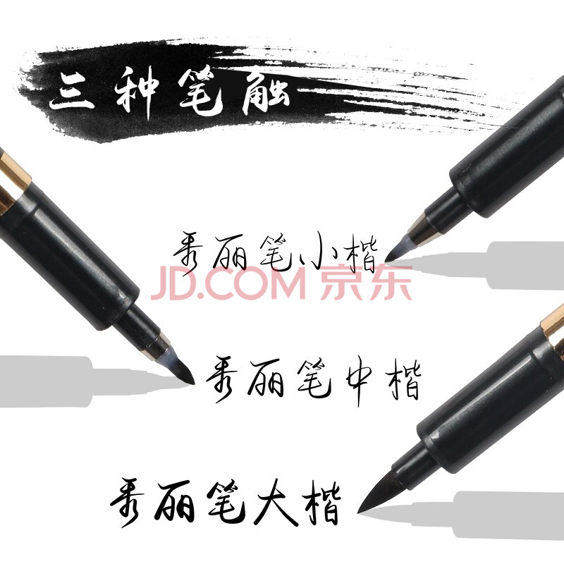 商品相册:金万年中楷秀丽笔写书法练字笔科学钢笔式毛笔入门初学者套装软硬笔 黑色(12支装) G-0939第1张/共9