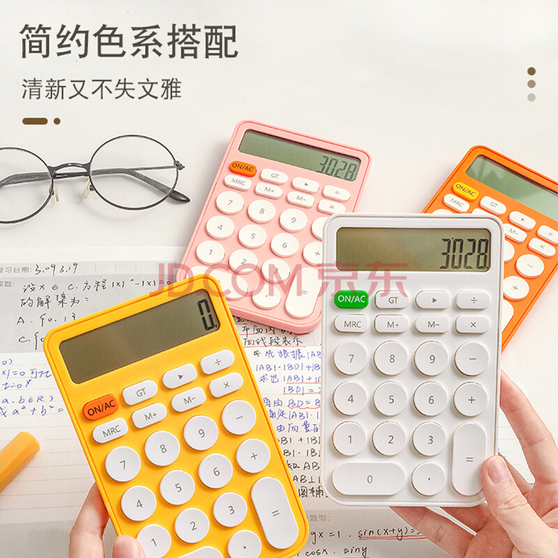 商品相册:三年二班【开学必备】糖果色计算器12位大屏幕计算机学生考试办公用迷你便携高颜值会计记算机器 牛奶白第