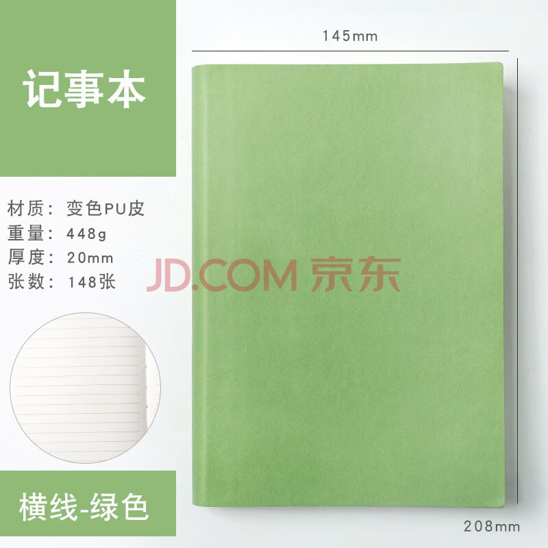 商品相册:三年二班 A5/148张横线PU材质加厚软皮笔记本子文具 学生学习记事本日程本日记本练习本 作业本 横线-绿色第