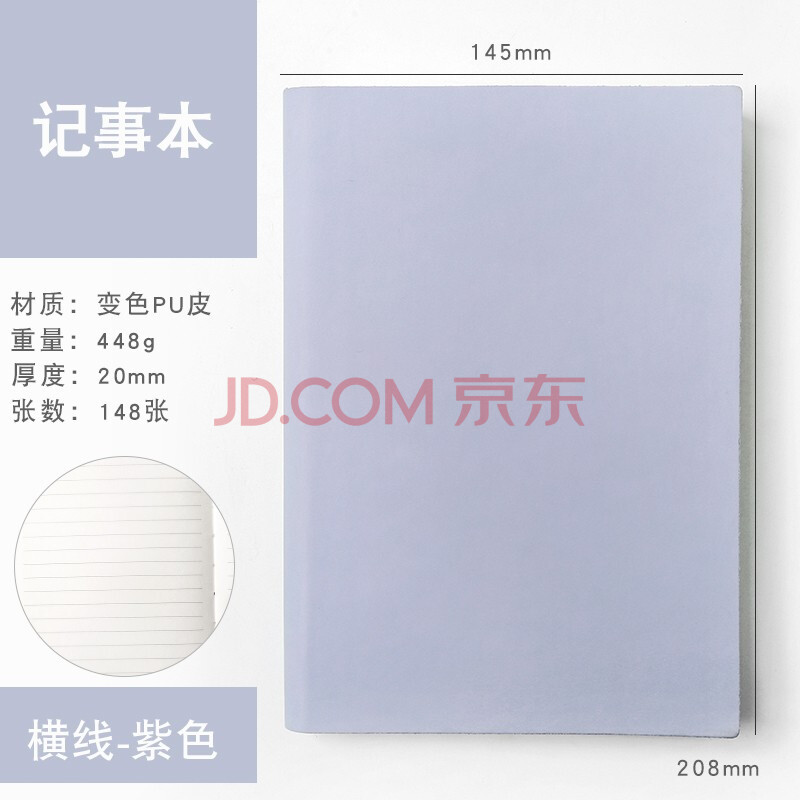 商品相册:三年二班 A5/148张横线PU材质加厚软皮笔记本子文具 学生学习记事本日程本日记本练习本作业本 横线-紫色第