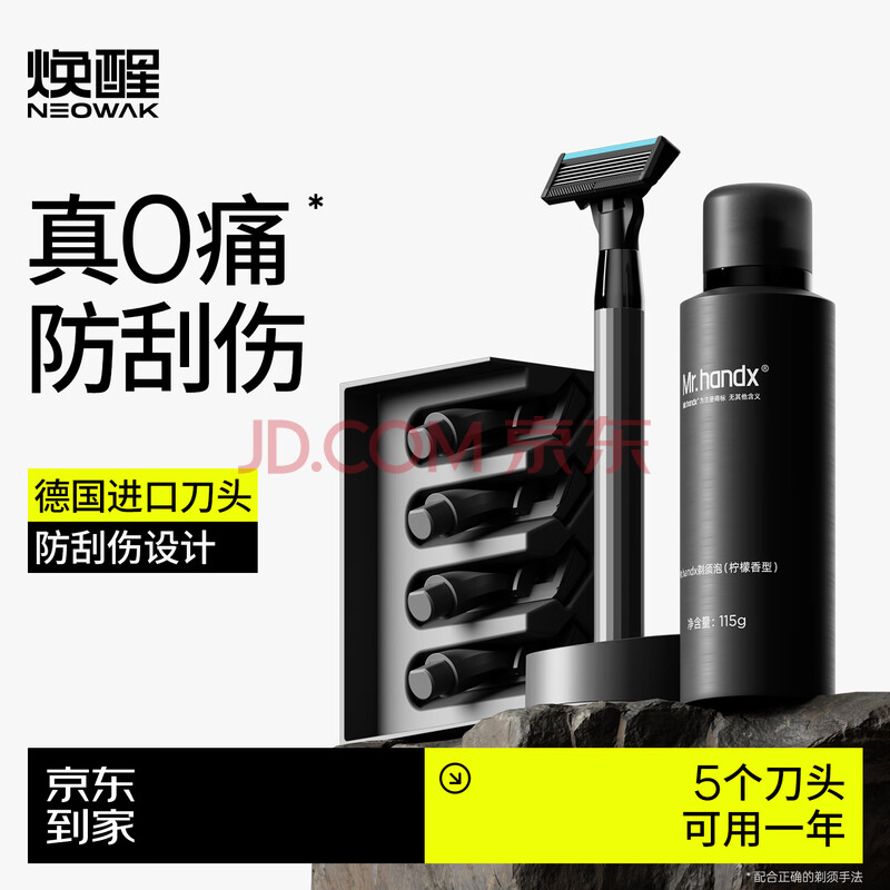 商品相册:焕醒手动剃须刀老式刮胡刀唤醒剃胡刀锋速5层刀头剃须防刮伤8件套礼盒送男友生日礼物第1张/共8