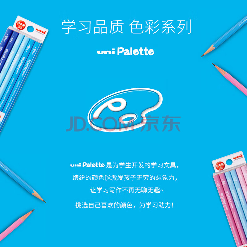 商品相册:uni三菱 美术素描标记铅笔 Palette系列小学生初学者绘图考试六角铅笔 5617 B 12支装第