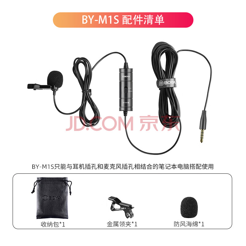 商品相册:BOYA 博雅麦克风 M1S手机直播领夹麦克风 摄像机单反相机采访短视频配音收音麦克风胸麦小蜜蜂话筒 6米第