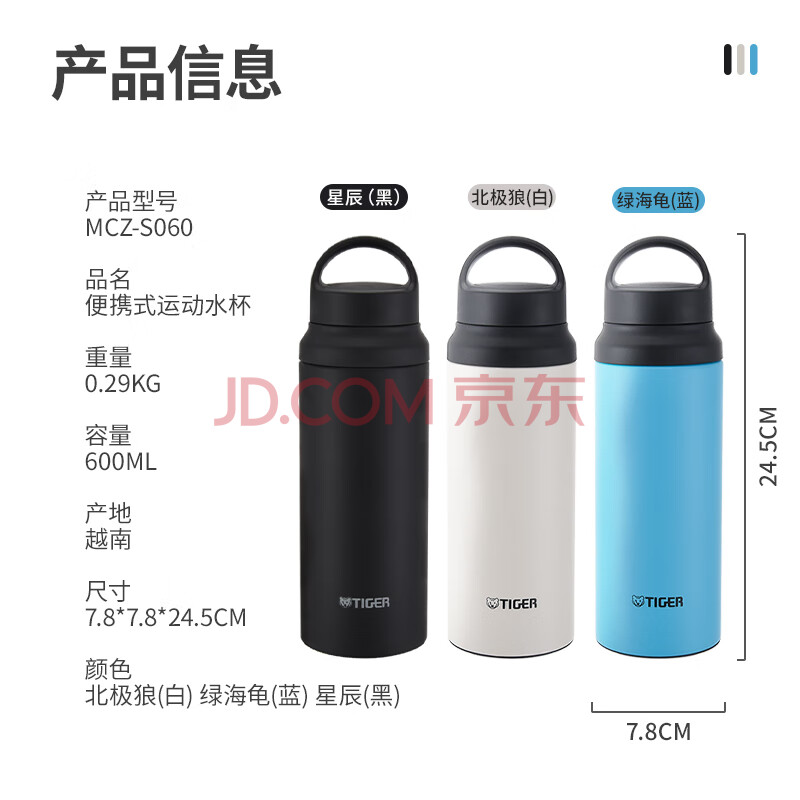 商品相册:虎牌(TIGER)保温杯户外运动暴汗杯便携保温保冷水杯MCZ-S060-ACT 600ml第
