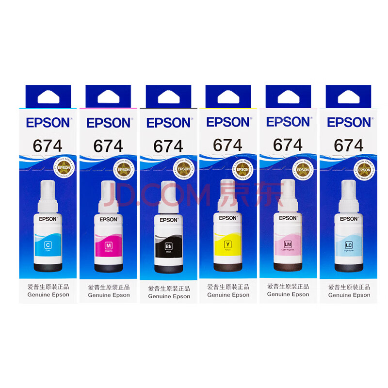 商品相册:爱普生(EPSON)674原装墨水 T6741-T6746盒装墨盒墨水套装6支 打印机(适用L801/L805/L810/L850/L1800)染料墨水第
