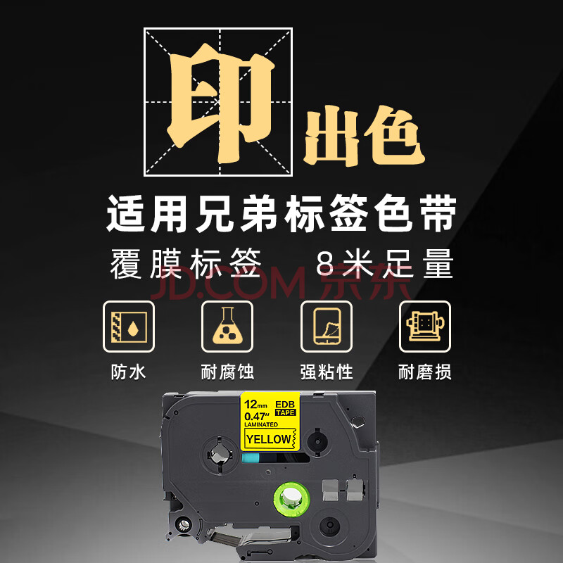 商品相册:V4INK适用兄弟标签机色带12mm黄底黑字 标签打印机色带 适用兄弟标签纸 T2e-631第
