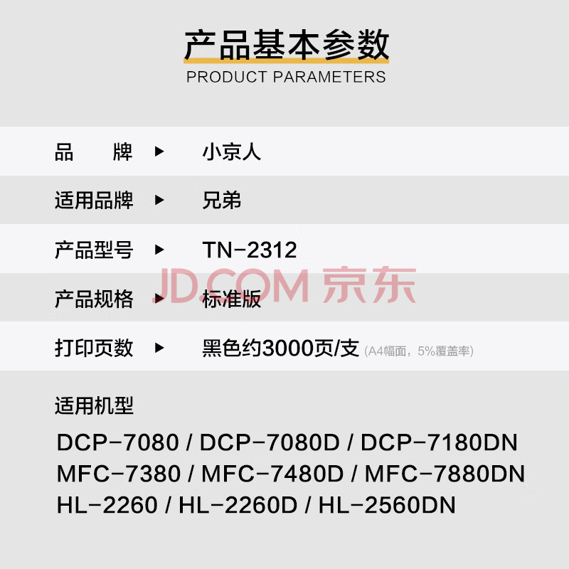 商品相册:小京人TN2325粉盒适用兄弟MFC7380 DCP7180硒鼓brother 7080d 7480 7880DN HL2260 2260D打印机墨盒墨粉盒第