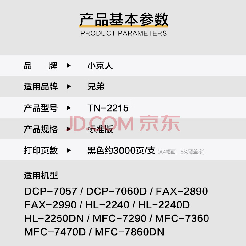 商品相册:小京人mfc7360硒鼓适用兄弟HL2240D 2890 7470D DCP7060D MFC7360 TN420 TN2215打印机墨盒2250硒鼓TN2225粉盒第