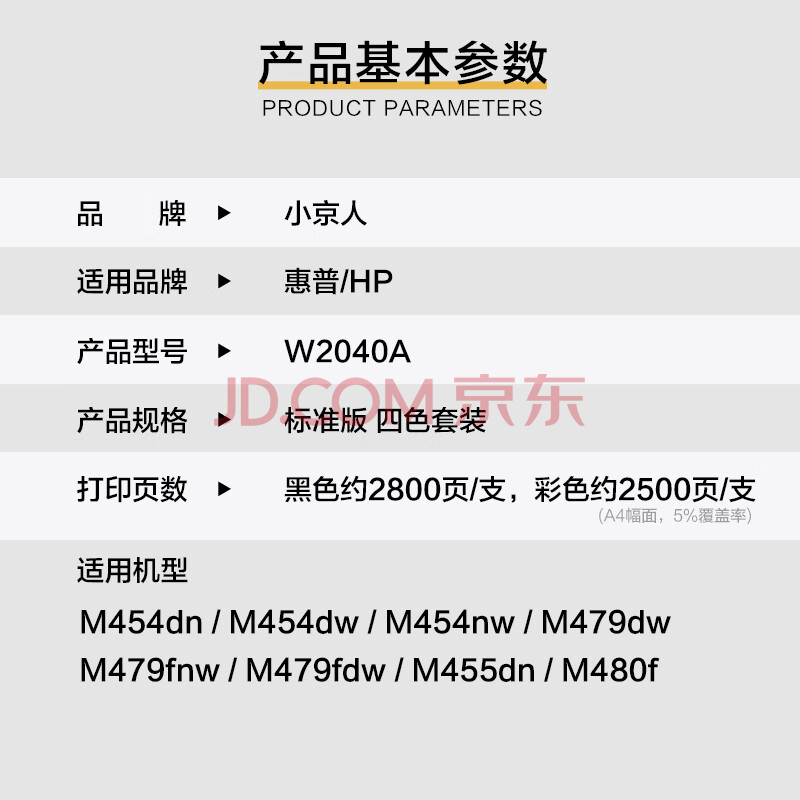 商品相册:小京人适用hp416a硒鼓惠普m479fdw m479dw墨盒m454dw m454dn粉盒m479fnw打印机墨粉盒w2040a碳粉盒带芯片第