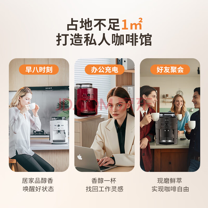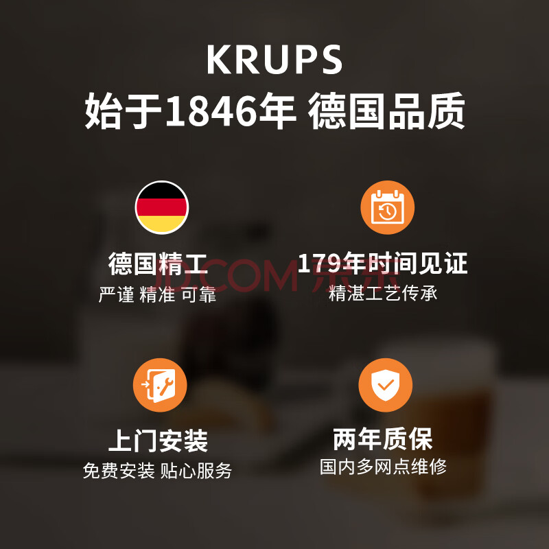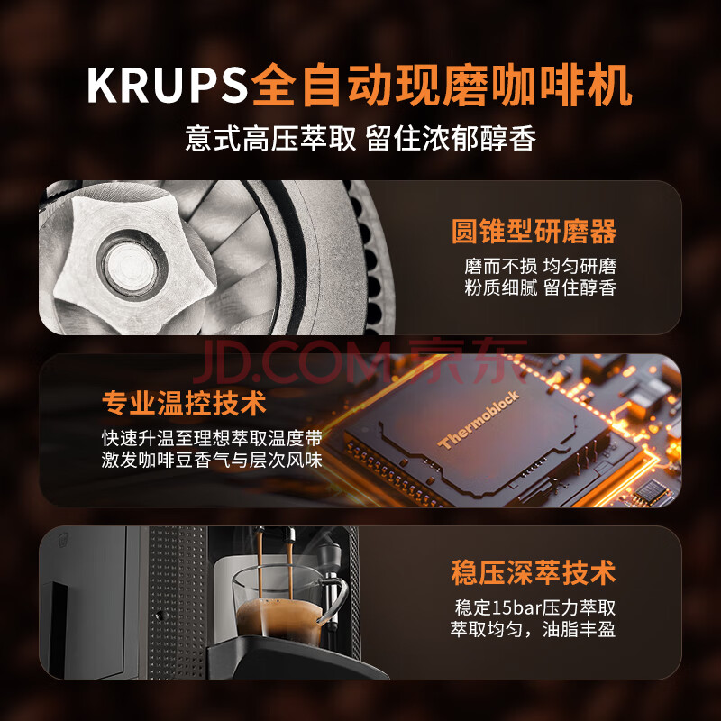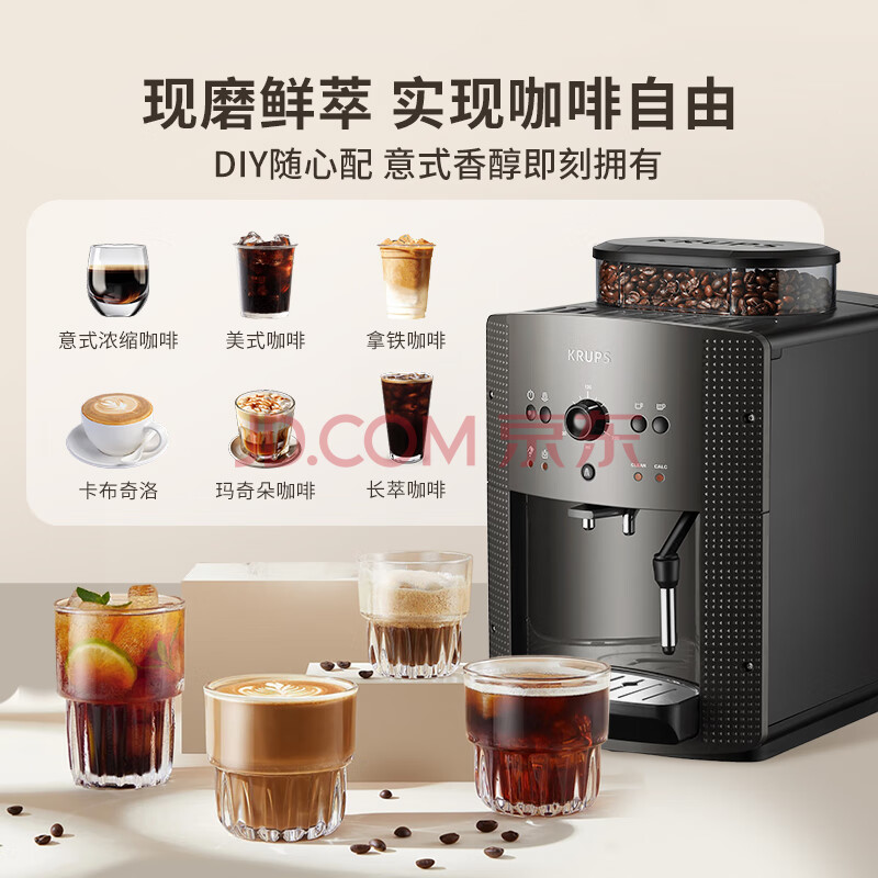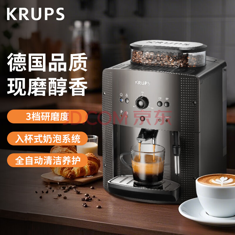 商品相册:krups德国克鲁伯咖啡机家用/办公室全自动咖啡机意式浓缩咖啡研磨一体机欧洲原装进口EA810B80 黑灰色第