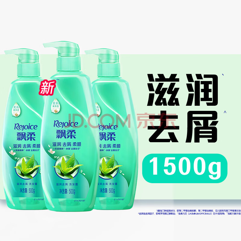 商品相册:飘柔滋润去屑洗发水男女士洗发露液洗头膏套装500g*3柔顺香氛第