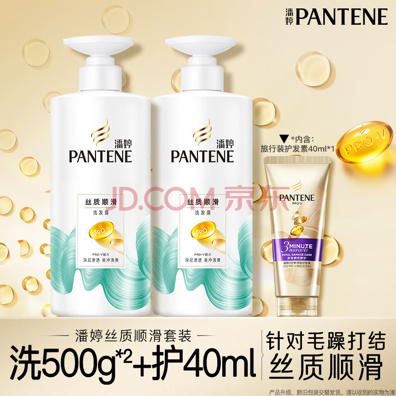 商品相册:潘婷氨基酸洗发水丝质顺滑洗500*2+护40ml洗发水洗头膏洗护套装第
