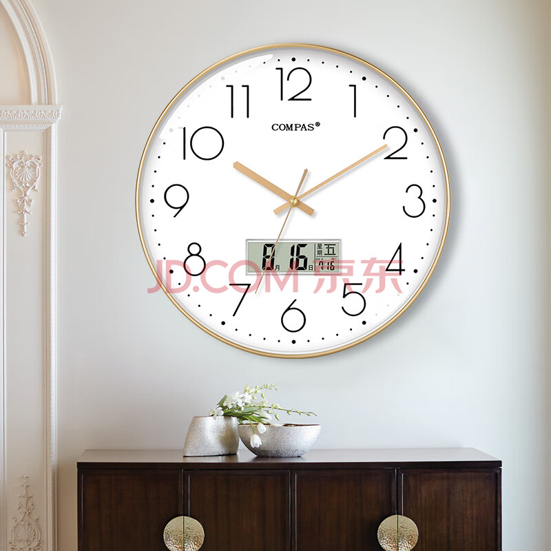 商品相册:康巴丝(Compas)挂钟客厅钟表石英钟表挂墙时钟日历挂表 C3219AY轻奢金 35cm第