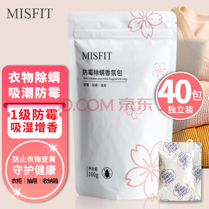 商品相册:MISFIT 防霉除螨香氛包40包*4g 樟脑丸除湿袋盒干燥剂防潮除味防蛀第
