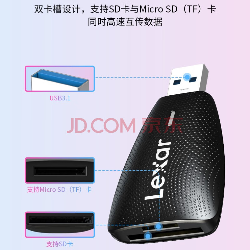 商品相册:雷克沙(Lexar)USB3.1读卡器多合一 TF/SD 二合一 监控记录仪TF卡相机SD卡多功能读卡器 多卡多读 稳定兼容第