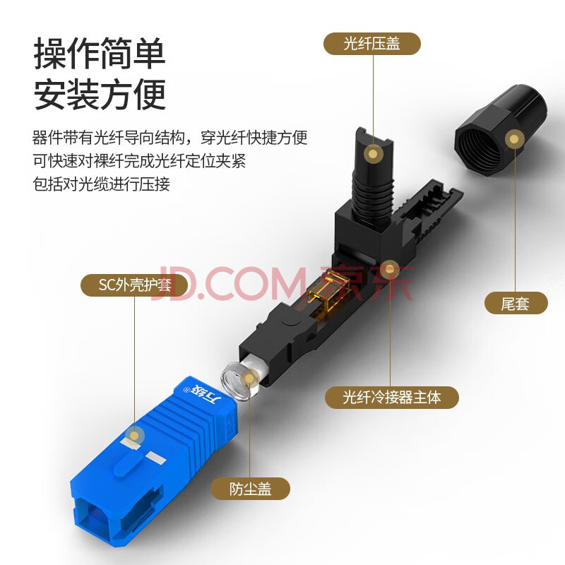 商品相册:万级(WANJEED)电信级SC/UPC光纤冷接头10个装 预埋式sc快速连接器冷接子电信移动皮线光纤到户接头第