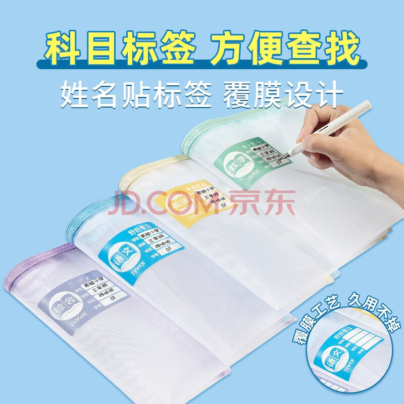 商品相册:金蝶(kingdee)单层网纱科目分类袋作业袋文件袋 开学季必备学科分类书袋书本收纳袋试卷袋拉链资料袋4只装 第